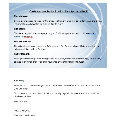 In the world of digital media, it is vitally important that we teach our children how to stay safe when they are using the internet- both in school and when at home. Similarly, we appreciate that the rapid advances in technology means that adults need as much up-to-date, relevant information too. We endeavour to support parents through sending home regular updates in newsletters or leaflets and posts on our digital platforms including here.